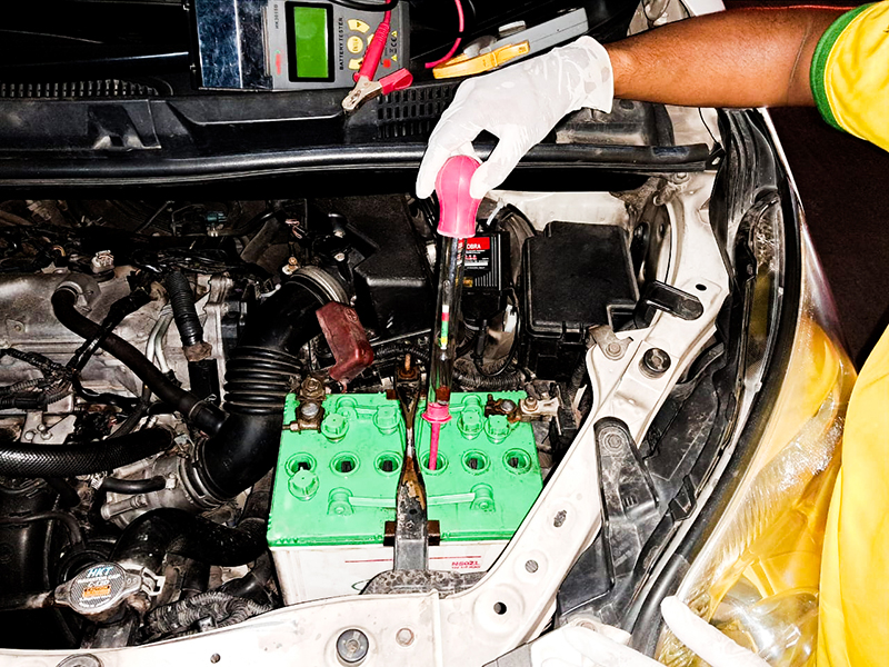 • গাড়ীতে ব্যাটারী সংযোগের পূর্বে গাড়ীর ইঞ্জিন বন্ধ করুন ও চাবি সরিয়ে ফেলুন। গাড়ী থেকে ব্যাটারী খুলুন এবং ব্যাটারী রাখার ট্রে ও ব্যাটারীর সাথে সংযুক্ত ক্যাবল, ক্ল্যাম্প ভালোভাবে পরিস্কার করে নতুন ব্যাটারী সংযোগ করুন।